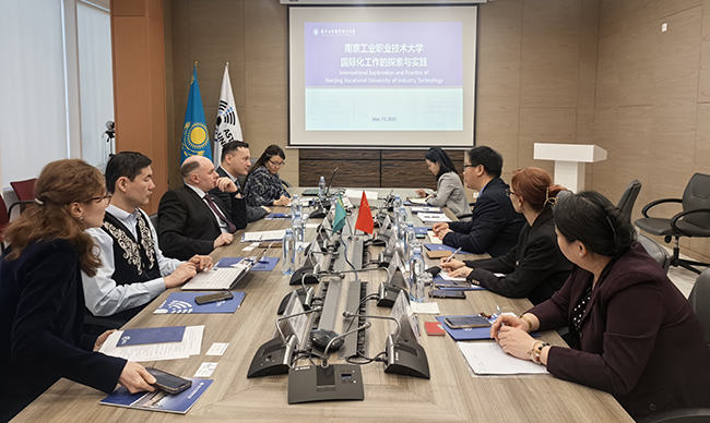 在纳扎尔巴耶夫大学,研究生院首席行政官叶尔肯·图尔甘巴耶夫(Yerken Turganbayev)、国际化处处长阿丽娅·凯莫尔迪诺娃(Aliya Kaimoldinova)、国际化处总经理阿伦·库斯潘诺夫(Alen Kuspanov)、国际化处经理艾格丽姆·扎齐特(Aigerim Zhazit)出席了会议。会上,叶尔肯·图尔甘巴耶夫希望双方围绕科研合作、教师与学生互访项目以及各类培训项目,展开深度探讨,共同探索中哈教育合作新路径,推动两国教育交流与合作迈向新高度,为“丝绸之路经济带”建设注入强劲教育动力。开云官网代表团介绍了江苏经济的整体情况、开云官网基本情况、国际化工作现状以及“中文+职业技能”教育合作方案。
