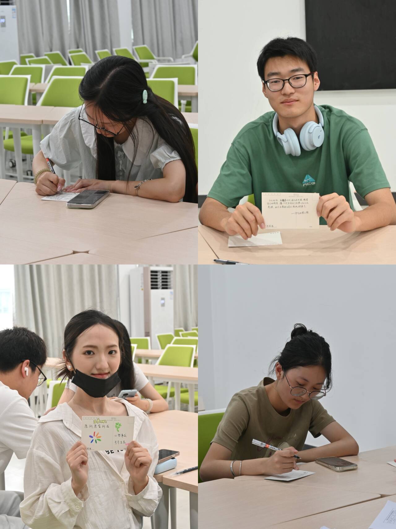 在创意明信片制作环节,同学们的创造力与想象力如泉涌般迸发。他们用五彩的画笔、精美的贴纸装饰明信片,在上面写下对自己的鼓励、对未来的期许。简单而真挚的话语,承载着满满的正能量。同学们相互分享自己的作品,在交流中增进彼此的了解与心灵的共鸣。大家在欢声笑语中打破了彼此之间的隔阂,建立起更加深厚的友谊。参与学生纷纷表示,“心灵之旅”心理拓展活动不仅释放了压力,还在活动中重新认识了自己与他人,提升了心理调适能力和团队合作意识。