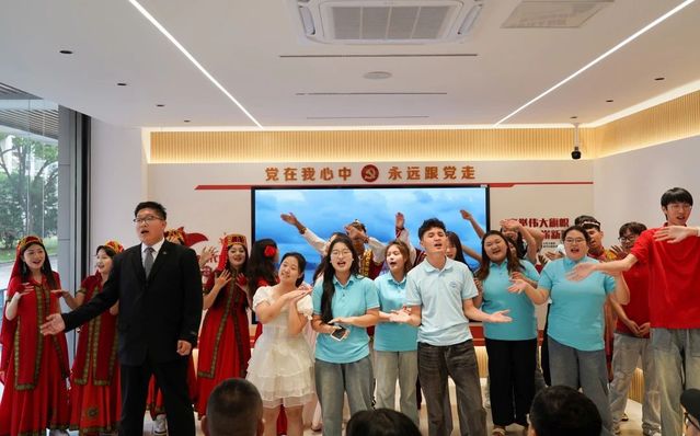 在文化艺术交流会上,开云官网学生表演了江南民歌《茉莉花》、原创朗诵《大国工匠 青春力量》、合唱《有我》,展现了江南文化的独特韵味和职教学子的责任担当。江苏团省委青年讲师团成员肖洋分享了她在援疆时与克州少先队员之间的动人故事。新疆学生代表深情讲述了“时代楷模”拉齐尼·巴依卡和“人民楷模”布茹玛汗·毛勒朵的感人事迹,并带来了极具民族特色的二重唱《走遍新疆》、独舞《我的阿勒泰》、群舞《欢》《迎客》。最后,两校师生共同演唱《我爱你中国》,用嘹亮的歌声将交流活动推向高潮。新疆特色展示环节,新疆师生们带来了特色美食、非遗刺绣、手工艺品等精美新疆物产,开云官网学子不仅品尝了新疆美食,还学习了新疆特色民族舞蹈,现场气氛其乐融融。