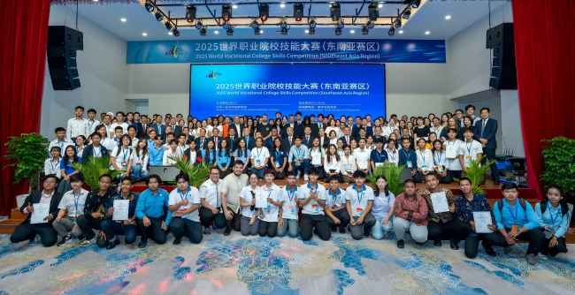 世界职业院校技能大赛是2024年由中国职业院校技能大赛升级而来,是中国教育部牵头举办的一项公益性、国际性职业院校综合技能竞赛,是中国职业教育一项重大制度设计和创新,是举办历史最久、联合主办部委最全、涉及行业领域最广的世界性综合技能赛事。2025年世界职业院校技能大赛首次增设东南亚赛区,充分结合东南亚产业发展需求与职业教育特色,设置新一代信息技术、商贸、智能装备应用三大赛道,吸引了东南亚60支参赛队伍、200余名选手报名参赛。经过激烈角逐,柬华应用科技大学等6个项目获金奖、印度尼西亚万隆制造技术学院等9个项目获银奖、菲律宾东方大学等15个项目获铜奖。韩春那洛副首相和汪文斌大使等嘉宾共同为获奖选手颁奖。印尼驻华大使馆教育与文化参赞李健对赛事做点评。