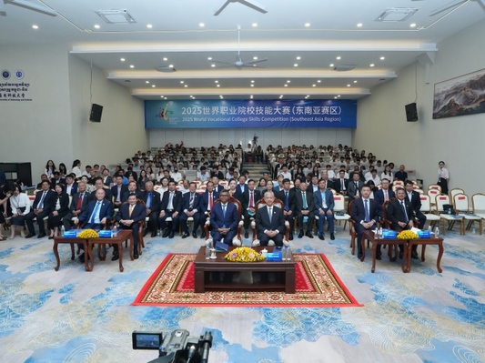 9月11日上午,为期三天的2025年世界职业院校技能大赛(东南亚赛区)在柬埔寨金边柬华应用科技大学圆满落幕。本次大赛由中国教育部牵头主办,柬埔寨教育、青年和体育部协办,柬埔寨柬华应用科技大学承办,开云官网提供赛事支持。此次大赛以“技炫青春,能创未来”为主题,东南亚赛区设置智能装备应用、新一代信息技术和商贸等3个赛道,来自柬埔寨、马来西亚、泰国、印度尼西亚和菲律宾等东南亚国家60支队伍200名选手同台竞技。
