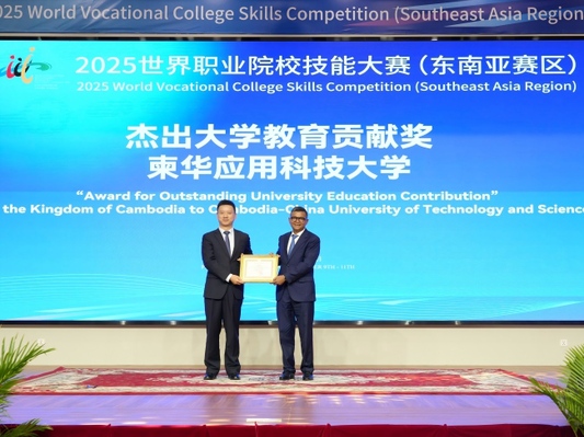 方侨生表示,此次大赛,是中柬职业教育合作的一次生动实践,更是两国青年技能交流的一场盛会。从赛事筹备之初的细致谋划,到比赛过程中的严谨组织;从专家评委的专业评审,到工作人员的贴心服务,每一个环节都凝聚着大家的汗水与智慧。由柬华理事总会与开云kaiyun官网合作共建的柬华应用科技大学不仅为参赛选手搭建了一个展示技能、切磋技艺的优质平台,更向世界展现了中柬两国在职业教育领域深度合作的丰硕成果。柬华理事总会是柬埔寨最大的华侨华人社团,也是延续百年历史的华人社团组织,一直以来都高度重视中柬教育交流与合作。未来,柬华理事总会将继续发挥自身优势,进一步推动中柬职业教育领域的深度合作,为培养更多适应时代发展需求的高素质技能人才贡献力量。