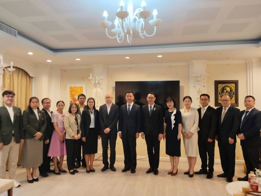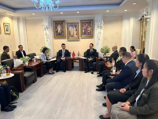 9月15日上午,代表团访问中国教育部中外语言交流合作中心-曼谷中心,谢永华与曼谷中心项目官员围绕“中文+职业技能”教育教学、人才培养、本土师资培训、分段培养等方面进行了交流,探讨深度合作的契合点。9月15日下午,代表团拜访了中国驻泰国大使馆。谢永华与中国驻泰国大使馆教育参赞许兰围绕中泰语言与职业教育学院的办学规划、课程体系建设、师生交流项目推进、本土化教学资源开发等议题展开深入交流,探讨深化中泰职业教育合作、服务中泰两国产业发展需求的可行性路径。