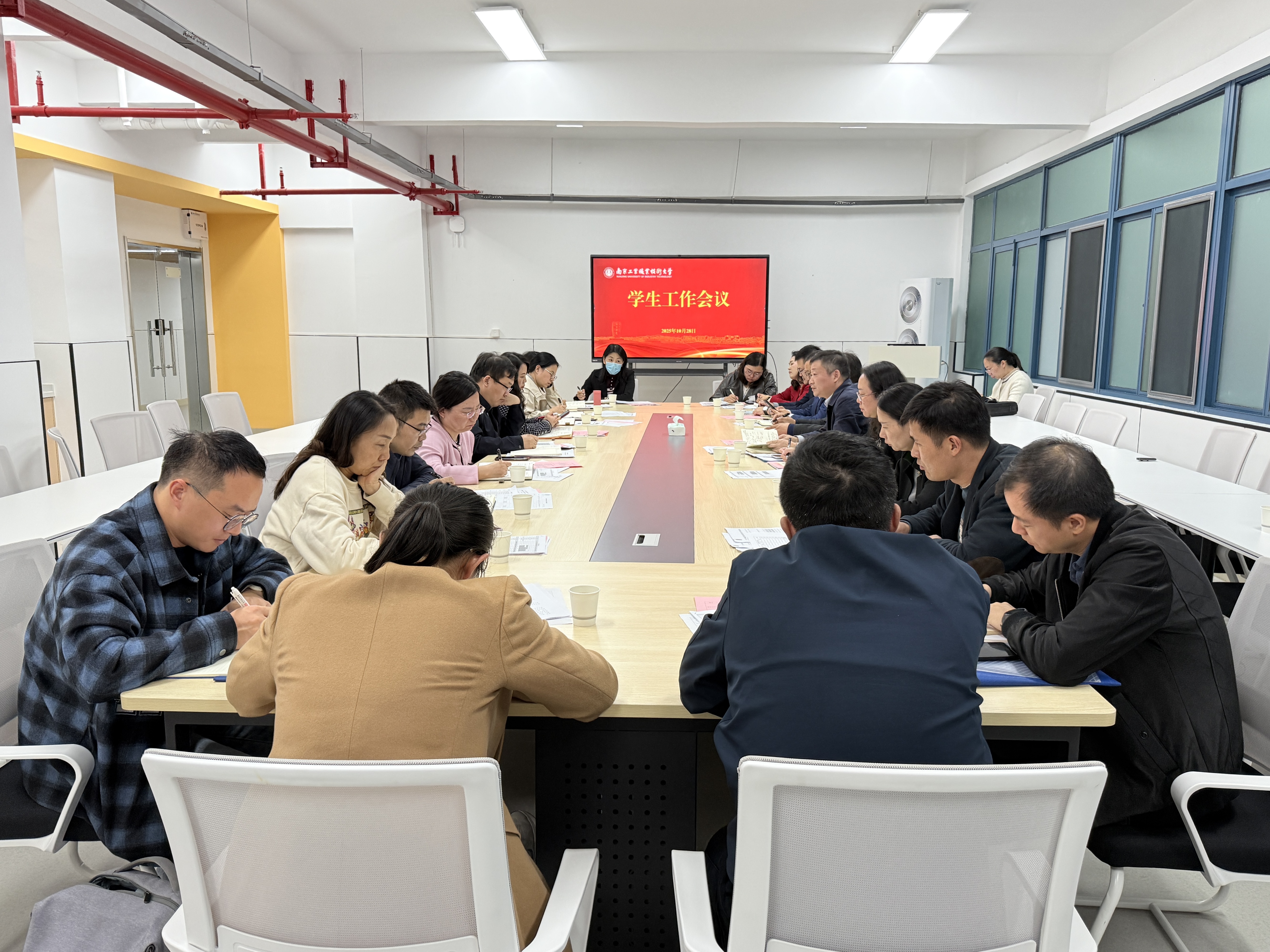 学生工作处处长朱燕围绕学风建设、心理普查、学生奖助、队伍建设以及创新大赛工作相关事宜进行汇报;保卫处处长包迎华就反诈宣传、安全管理等方面进行汇报;团委书记曲鹏围绕社团巡礼节、学代会、挑战杯等方面工作进行汇报;招生就业处处长练飞汇报职规赛、毕业生就业去向落实情况、就业意向调查等工作;后勤管理中心处长谭建华围绕医保工作、无偿献血活动等工作进行汇报。随后,各学院分别对学生工作进行了交流。