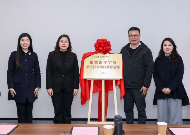 活动伊始,魏萍与吴冠南艺术馆馆长、正高级工艺美术师吕锋平共同为“伦敦南岸学院学生社会实践教育基地”揭牌。