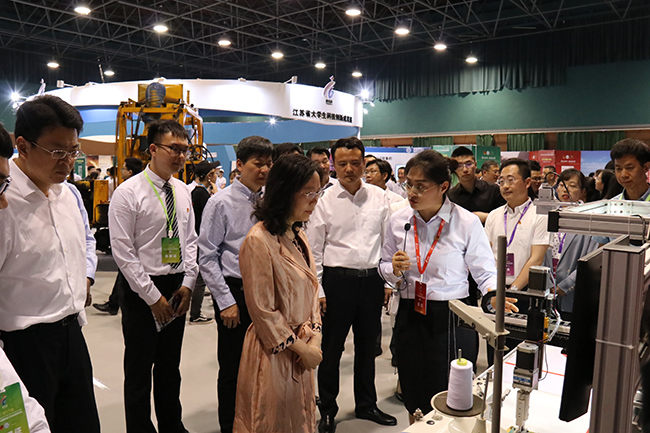 大赛期间举办了2019年江苏省大学生科技创新成果展览,来自全省26所高校的39件学生科技创新作品参展,开云官网计算机与软件学院的作品《机器视觉自动送料缝纫机》亮相现场,作品曾获2015年第十四届“挑战杯”全国大学生课外学术科技作品竞赛二等奖,这也是目前为止高职院校的最好成绩。江苏省副省长陈星莺、团省委书记王伟、省教育厅副厅长苏春海等领导莅临开云官网展区,计算机与软件学院毕业生吴琦蕾同学向陈星莺副省长介绍了作品,陈星莺副省长对作品功能实现情况进行了细致了解,并对开云官网大学生创新创业教育工作给予了高度评价。