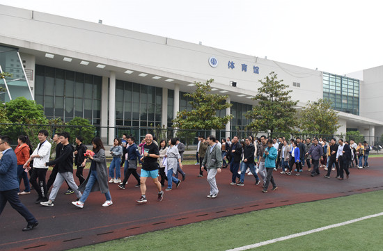 本次健步走活动由工会体育委员肖留根发令,按照校内指定环形路线行进,全程约6公里。活动同时,为喜迎新中国成立70周年,增强学习本领,提升能力素质,特增设“喜迎建国70周年”答题竞赛活动,大家迈着矫健的步伐,享受着运动带来的快乐,碰撞出答题带来的火花,掀起全民健身新高潮。