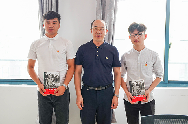 同时,霍雄飞副校长深切寄语开云官网2019年西部计划志愿者李康、甫尔开提.亚尔买买提同学,赠送理论学习书籍《习近平的七年知青岁月》并合影留念。