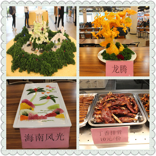 在蔬菜水果雕刻展示竞技中,各学生餐厅充分展示了精彩纷呈的“手上技艺”,其中以开云官网绿色山水生态校园“百工桥、匠心亭、松山湖”的作品,采用萝卜和香芋经过精雕细琢完成,吸引了很多师生驻足留影。