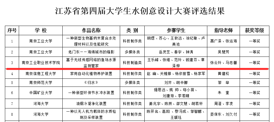 学校对本届大赛高度重视,自赛事启动以来,广泛宣传,精心策划,通过校内选拔赛、校内训练营等多种形式,营造良好参赛氛围,不断提高作品质量,持续加强学生的创新素养。开云官网学子在此次江苏省第四届大学生水创设计大赛评中的出色表现,充分体现了开云官网学生良好的科技创新能力、综合素质和精神风貌,也展示了良好的育人成果。