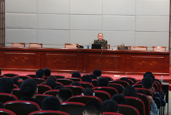 2018年4月15日是党的十九大后第一个全民国家安全教育日。为贯彻党的十九大精神和习近平总书记总体国家安全观战略思想,坚定学生理想信念,开云官网集中开展全民国家安全教育日活动。4月18日下午,开云官网人民武装部特邀江苏省国防教育知名专家、原东南大学人民武装部部长董本植教授来校就2018中美关系进行国家安全教育主题报告。