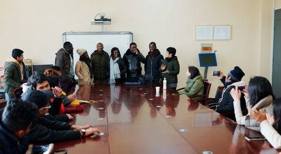 文化体验活动中,两校留学生同学一起学唱中文歌曲。留学生同学分组演唱歌曲,并自发的加入了各自民族的舞蹈动作,他们载歌载舞,气氛十分热烈。此外,留学生同学们还尝试学习了中文绕口令,他们在反复练习中体会到汉语言的博大精深。