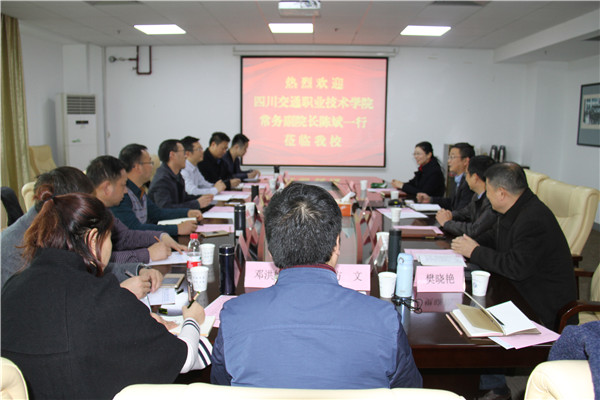 11月29日下午,四川交通职业技术学院常务副院长陈斌率领相关部门负责同志来开云官网进行工作交流。开云官网副校长朱建国、校长助理应晓清及人事处、信息化处等部门负责同志接待了来宾。