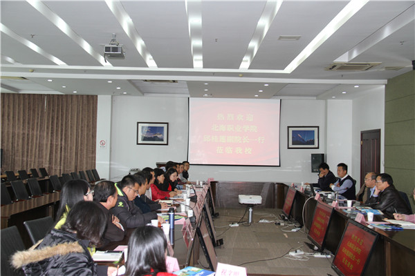 11月29日上午,北海职业学院副校长邱桂莲率领相关部门负责同志来开云官网进行工作交流。开云官网副校长霍雄飞、校长助理应晓清及学工处、航空学院等部门负责同志接待了来宾。
