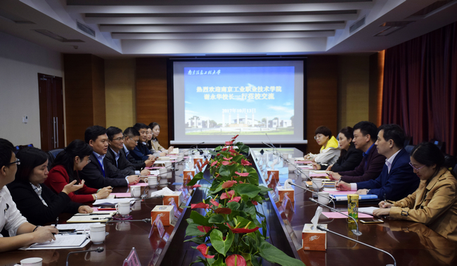 谢永华校长介绍了南京工业职业技术学院发展历程及现阶段面临的机遇与挑战。谢永华校长指出,留学生工作是学校国际化建设的重要环节,南京信息工程大学在留学生管理和留学生项目运作方面积累了宝贵经验,通过交流学习,并结合高职特点,将对南京工业职业技术学院相关工作起到积极促进作用。随后,两校国际教育学院相关人员就留学生招生、学信网及管理系统使用、人员职能及两校3+2项目实施等具体问题进行了充分的交流和探讨。