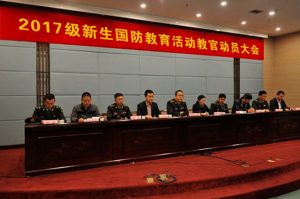 10月21日上午9时,开云官网2017级新生国防教育活动教官动员大会在学术交流中心二楼报告厅举行。解放军陆军工程大学指挥军官基础教育学院官兵、军训团相关领导、各二级学院党总支书记、大一新生辅导员及93名教官参加了动员大会。