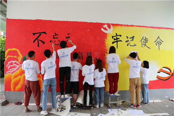 6月22日上午,“小橘灯”暑期社会实践团的志愿者们对城东实小校园部分墙面进行美化,绘制了“不忘初心、牢记使命”主题墙绘。志愿者们分工明确,相互合作,调配颜色、描边勾线、绘图上色,一气呵成。经过四个小时的努力,墙绘顺利完成,城东实小的王建梅校长对志愿者们的辛勤付出给予了充分肯定。志愿者们通过绘制主题墙绘,在该校营造了培育和践行社会主义核心价值观的良好氛围,引导该校学生在潜移默化中接受教育,树立正确的价值观念。