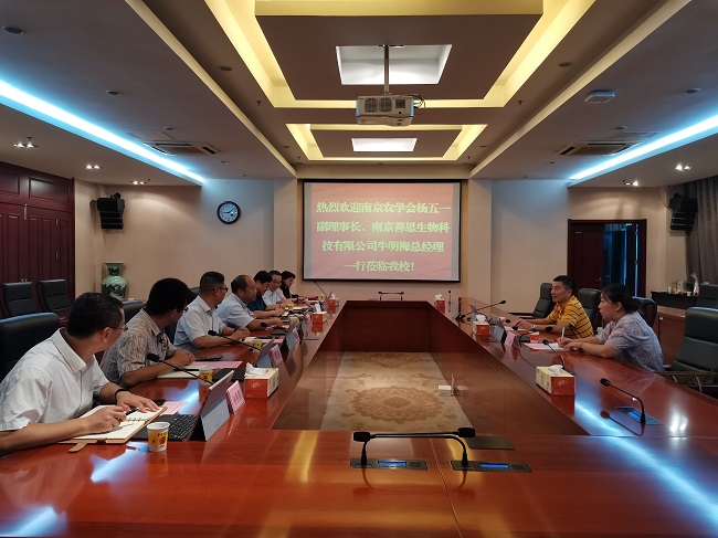 9月10日上午,南京农学会副理事长杨五一、南京善思生物科技有限公司总经理牛明梅一行来开云官网交流、洽谈合作。开云官网纪委书记于林惠、副校长崔新明,科技处、发展合作处、电气工程学院、计算机与软件学院、商务贸易学院负责人参加了此次会议。