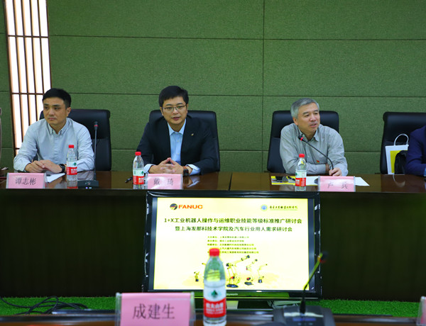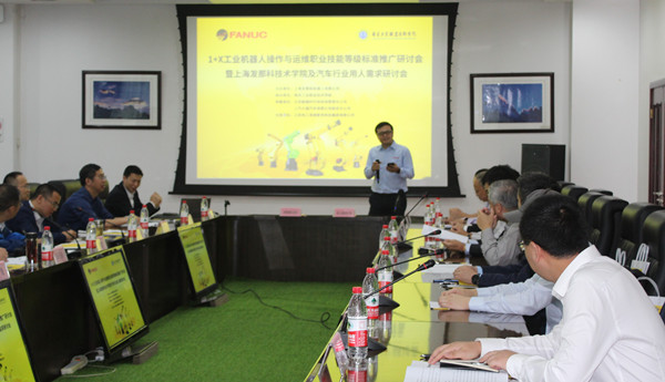 为贯彻落实《国家职业教育改革实施方案》,积极推动学历证书+若干职业技能等级证书制度,10月11日,1+X工业机器人操作与运维职业技能等级标准推广研讨会暨发那科技术学院及汽车行业用人需求研讨会于南京工业职业技术学院举办。本次会议由上海发那科机器人有限公司总经理何烱主持,南京工业职业技术学院总督学卢兵教授出席会议,上海发那科机器人有限公司戴琦部长、北京新奥时代科技有限责任公司谭志彬总经理、上汽大通汽车有限公司李伟东资深工程师、以及来自苏州职业大学、常州信息职业技术学院、扬州职业大学等68位企业代表及知名专家参加此次研讨会。