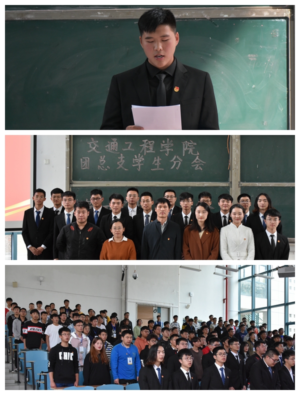 伴随着庄严的国歌声,大会拉开了帷幕。首先,交通工程学院学生分会主席陈燕清同学作2018—2019学年交通工程学院学生会工作报告,交通工程学院团总支副书记郑成鹏同学作2018—2019学年交通工程学院团总支工作汇报。在汇报中,二人总结了他们任期中交通工程学院团总支学生分会组织举办的各项活动,并对下任学生会的同学提出了建议和祝福。两位同学述职结束后,全体师生共同观看了2018—2019学年交通工程学院团总支学生分会的活动视频,热烈活泼的画面仿佛将大家拉回现场,同时也激励了在场的所有人。