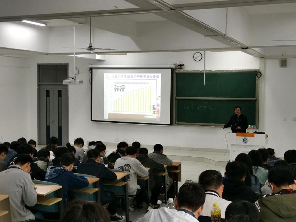 11月7日下午,由机械工程学院主办的大学生就业指导专题讲座在乐群楼J1201举行,机械工程学院大二、大三学生踊跃参加,能容纳200多人的阶梯教室座无虚席。