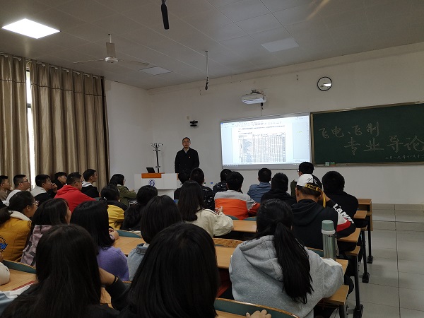 11月13日下午,航空工程学院在乐群楼312教室开展2019级“飞机电子设备维修”和“飞行器制造技术专业”专业导论课,航空工程学院院长黄杰担任主讲人。