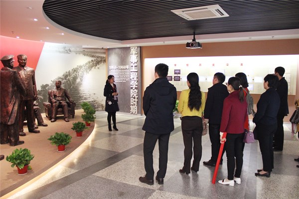 此次学习交流活动得到南京理工大学党委的大力支持和热情接待,南京理工大学党委组织部副部长董春秋、党委组织部正科级组织员王琼、胡伟、何蔚超、党委宣传部实境课堂教师尚文浩参加了研讨。学习交流中,董春秋介绍了南京理工大学党员教育实境课堂建设的基本情况,胡伟从教育资源、主要做法和教育成效三个方面进行了经验分享。南京理工大学“军工精神与党性教育”党员教育实境课堂以军工精神为切入点,通过大量的实物原型和生动的现场讲解,以国防现代化建设为缩影,集中展现党领导人民取得的伟大成就;并通过老一代优秀党员身上绽放的党性光芒,自觉激发青年党员“不忘初心、牢记使命,砥砺前行”。南京理工大学在军工精神、爱国主义、党性作风、创新发展等模块的党员教育培训中,坚持“三馆为主、多点联动”的实境教学模式,以兵器博物馆、祝榆生纪念馆、王泽山院士展等实境教学为主体,并与校史馆、校训牌坊、止戈园、和平园、任新民塑像、长征5号运载火箭实体模型等实境教学资源多点联动。会上,开云官网机关第一党总支书记高宏彦、组教支部书记杨雨慧分别介绍了开云官网党建工作、党员教育实境课堂建设等做法及体会,双方还就加强基层党支部建设、党员日常管理等方面进行了交流和探讨。会后,全体党员参观体验了兵器博物馆、祝榆生纪念馆及校史馆等实境课堂的现场教学。在学习参观过程中,党员们感觉到这样的实境课堂少了说教,多了体验式、情景式、互动式的学习教育体验,受益匪浅。