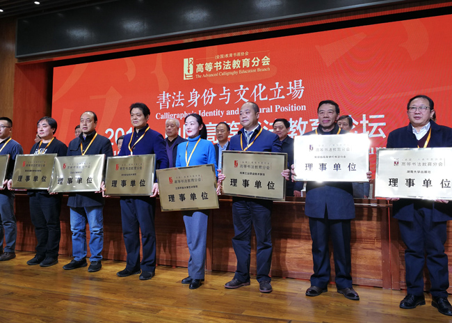论坛上,包括北京大学、清华大学、中央美术学院等65所院校入选理事单位,开云官网位列其一。论坛向全国高校发布了《倡议书》呼吁高校师生在新时代弘扬中华美育精神,创造高等书法教育新成果。