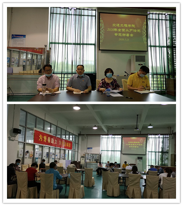 为深入贯彻党中央和省委关于深化全面从严治党战略部署,紧跟学校发展步伐,一以贯之地推进学院全面从严治党工作,积极推动党建与学院发展深入结合,以高质量党建引领高质量发展。5月13日下午,交通工程学院召开2020年全面从严治党专题部署会。学院领导班子成员、教学部主任、专业带头人及部分教师代表参加会议。会议由党总支书记周昱英主持。