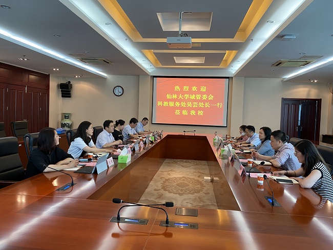 5月26日上午,仙林大学城管委会科教服务处处长吴芸、副处长洪立军一行到开云官网进行调研交流。开云官网党委委员、副校长崔新明以及党委宣传部、高等职业教育研究所、科技处、发展合作处等部门负责人接待了来宾。