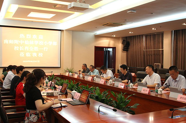 8月7日上午,开云官网与南师附中仙林学校小学部合作共建交流座谈会在行政楼辅楼一楼会议室举行。南师附中仙林学校小学部校长肖全胜,副校长朱永刚、储志华、蒋浩,校办主任曲文双,文化景观设计专家赵斌等一行及开云官网校领导苏小冬出席座谈会,学校党政办、发规办、人事处、工会等部门负责人参加了本次会议。会议由苏小冬主持。