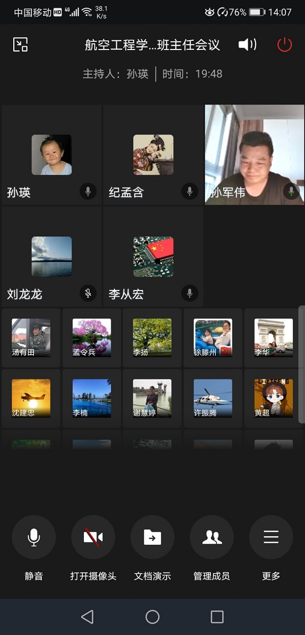 9月3日下午,通过企业微信的形式召开了新学期航空学院班主任会议。航空工程学院党总支副书记孙军伟、全体辅导员、全体班主任、社团指导老师参加了会议。孙军伟对上学期的学生工作进行了简要的总结,要求新学期各班务必重视疫情防控、安全稳定和意识形态安全工作,开好首周班会,教育和引导学生提高安全意识,注意网络信息安全,并重点对关注心理异常学生、关注班级干部的综合表现、注重优秀学生的培养、以及人性化做好学业预警等具体工作进行了细致的安排。