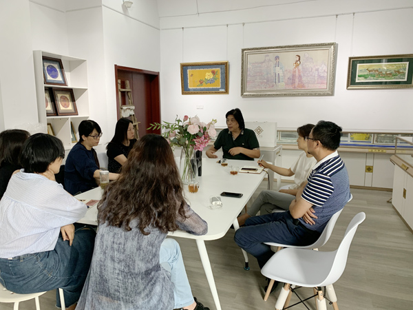 开学第一周,艺术设计学院专门召集教学部主任召开科研工作会议,要求每个教学部要成立以博士与高级职称教师领衔的科研创新团队。9月11日下午室内设计专业的"非遗文创科研创新团队"与开云官网“金文云锦大师工作室”进行交流座谈,主要围绕人才培养,课程规划,项目合作与大赛指导进行了深度探讨,并初步确定了近期要开展的相关合作事宜,双方一致同意将围绕"南京云锦"开展系列专场讲座、师生实操能力培训、项目合作等各项对接工作。