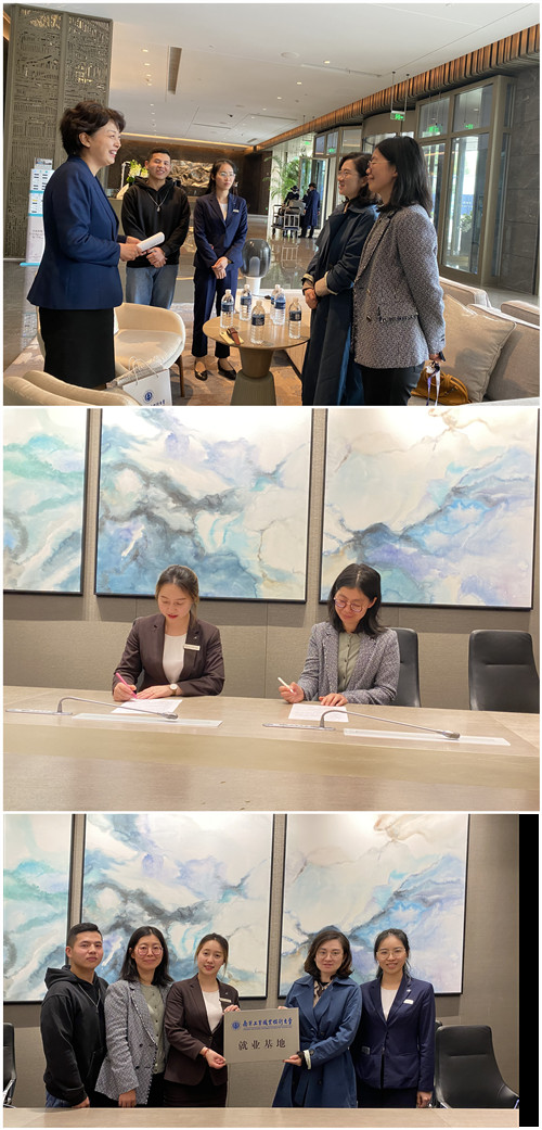 11月2日,黄滢带队来到就业基地单位走访调研,同时还看望了在酒店工作的2020届毕业生。调研组一行和2020届毕业生、酒店1711班张曼曼和郭岱宗一起参观了酒店的环境,实地考察了他们的工作和职场发展状况。随后,在会议室举行了授牌和签约仪式(就业基地合作)并进行了座谈,了解了学生的工作状况及工作计划等,通过这次实地走访,看到学生成长的变化,对工作的满意,老师们都很欣慰。
