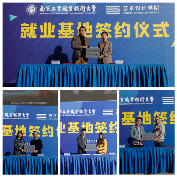 本次招聘会吸引了百余家单位报名,并最终筛选出江苏原力动画制作股份有限公司、南京合生雅居智能家居科技有限公司、江苏品润文化艺术有限公司等四十余家单位参展,直接提供岗位1500余个,囊括产品艺术、视觉、动漫、环境艺术、数字媒体等专业方向,涉及文化、艺术、生产、制造、计算机、管理、教育、零售等行业领域。同时通过本次招聘会,学院还与北京大业美家家居装饰有限公司、南京小银星艺术培训学校、南京盘子女人坊文化产业有限公司等16家优质企业签订了就业基地协议,并授牌。
