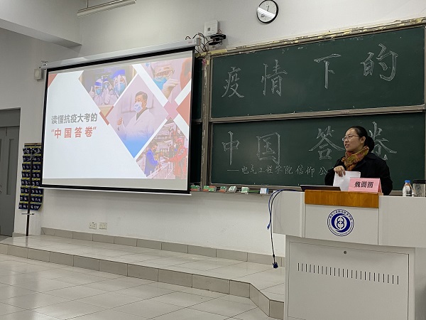 为深入学习习近平新时代中国特色社会主义思想,积极响应团中央、团省委、学校对共青团思想政治引领工作和价值引领工作提出的新要求,11月6日中午,电气工程学院在乐群楼J302开展主题“信仰之光,点亮青春”的信仰公开课,邀请了马克思主义学院教师魏圆圆给学生们开展了一场生动的题为“读懂抗疫大考的中国答卷”的新思想公开课。