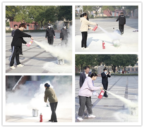 王启海科长详细介绍了灭火器的使用原理和注意事项,亲自演练了灭火器的使用方法。在场的学生和管理员代表都进行了消防灭火演练。