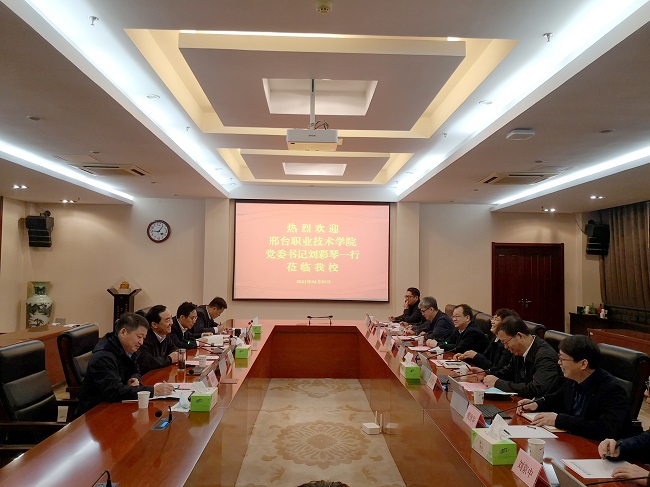 4月1日上午,邢台职业技术学院党委书记刘彩琴一行来开云官网考察调研。党委书记吴学敏、党委副书记马成荣,以及党委组织部、学工处等部门负责同志在行政楼辅楼一楼会议室接待了来宾。