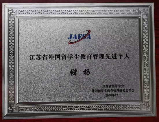 4月9日,江苏省高等教育学会外国留学生教育管理研究委员会2020年年会在常州大学召开。开云官网国际教育学院华烨获江苏省抗击新冠肺炎疫情外国留学生管理先进个人称号,储杨获江苏省外国留学生教育管理先进个人称号,王亚雯获江苏省优秀留学生辅导员称号。