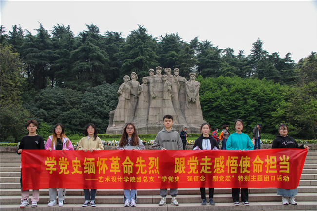 2021年是中国共产党成立100周年,为引导广大团员青年深入学习习近平总书记关于崇尚英雄缅怀英烈的重要论述精神和习近平总书记在党史学习教育动员大会上的重要讲话精神,纪念为新中国以身殉道的革命先驱,加强爱国主义教育,引导学院青年学生从党史中启迪思想、获得力量,坚定理想信念,增强听党话、跟党走的思想和行动自觉,艺术设计学院团总支组织团员青年开展“学党史、强信念、跟党走”主题团日活动,缅怀革命先烈,致敬建党百年。