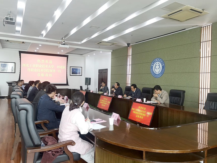 4月9日上午,河北工业职业技术大学党委书记王振杰、校长薛晓萍、河北软件职业技术学院副院长乔哲一行来开云官网考察调研。党委书记吴学敏、党委副书记马成荣,以及发规处、本科职业教育试点办公室、科技处、发展合作处等部门负责同志在行政楼辅楼二楼会议室接待了来宾。