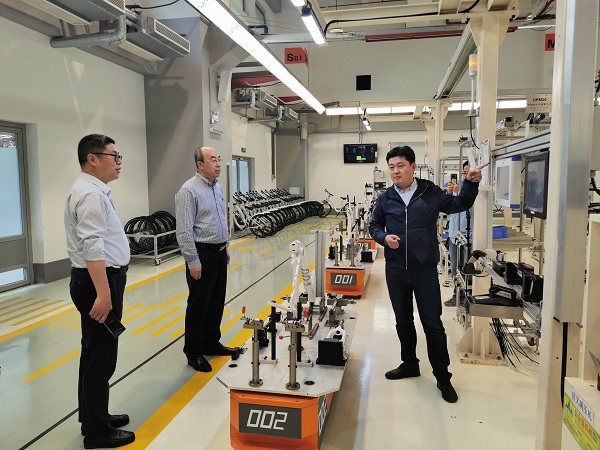 5月7日,调研组来到上海第二工业大学,与该校丁力副校长及相关部门负责人进行了座谈交流。霍雄飞副校长简要回顾了两校的近二十年的互动交流历史,介绍了学校基本情况、本科职业教育试点情况等,并对调研目的和主题作了说明。丁力副校长重点从学校历史、办学规模特色等方面介绍了上海第二工业大学的基本情况。该校发展规划处、科研处等相关部门负责人就“十四五”规划总体思路、框架和主要内容,以及学科与专业建设、应用型人才培养模式与经验等进行了介绍。双方与会人员围绕发展标杆学校选择、对外开放办学、培训基地建设、人才培养模式改革、高层次人才引进、专业建设等相关主题进行了深入交流。随后,调研组成员实地参观了该校国家级智能制造智慧学习工场——智能制造工厂实验室,观看了自行车智能装配生产线和智能化产品项目的设计、制造及其运维过程,了解了该校与行业、龙头企业深度合作开展协同科研和育人的机制和模式。