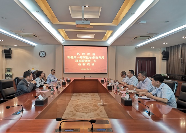 5月21日上午,新疆第一师阿拉尔市教育局局长杨建刚一行来开云官网考察调研。党委常委、副校长苏小冬,以及校长办公室、教务处、科技处、发展合作处等部门负责同志在行政楼辅楼一楼会议室接待了来宾。