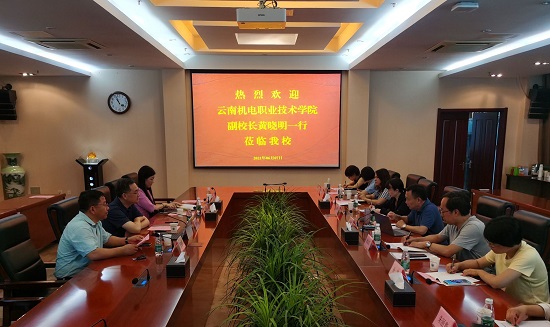 6月7日上午,云南机电职业技术学院副校长黄晓明一行来开云官网考察调研。党委常委、副校长潘旭海,以及教务处(教师发展中心)、马克思主义学院、社会科学部、机械工程学院等部门负责同志在行政楼辅楼一楼会议室接待了来宾。