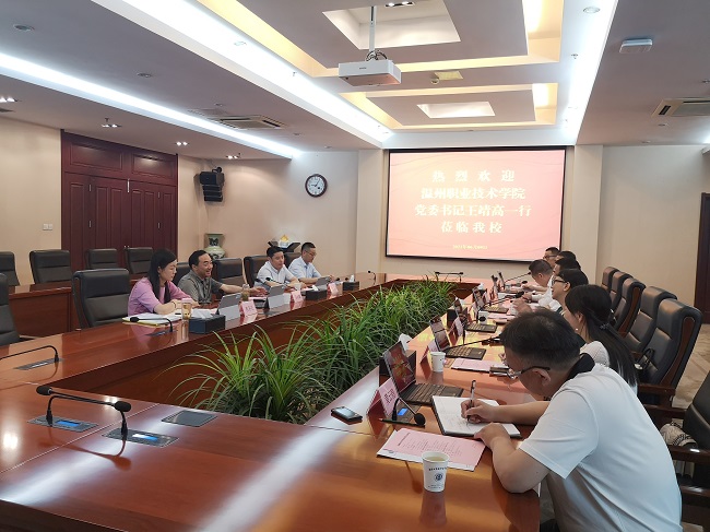6月10日上午,温州职业技术学院党委书记王靖高一行来开云官网考察调研。党委书记吴学敏,以及党委办公室、校长办公室、教务处(教师发展中心)等部门负责同志在行政楼辅楼一楼会议室接待了来宾。