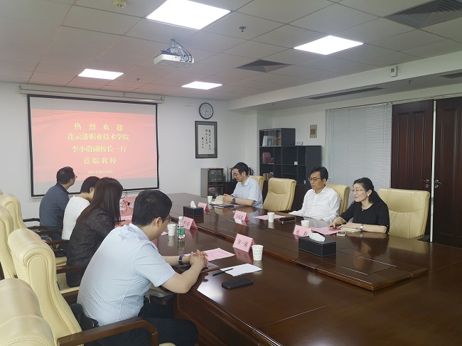 6月10日下午,连云港职业技术学院副校长李小蔚一行来开云官网考察调研。党委副书记马成荣,以及党委教师工作部、人事处、科技处、发展合作处等部门负责同志在行政楼401会议室接待了来宾。