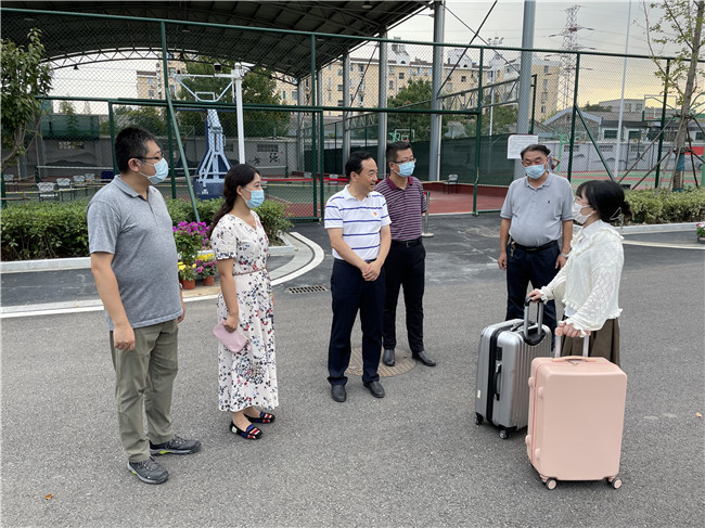 10月9日,校党委书记吴学敏、党委常委、副校长崔新明专程来到学校天堂校区,关心和视察艺术设计学院学生返校工作。