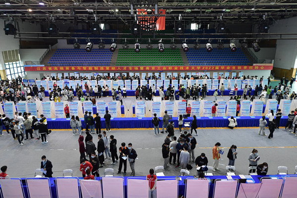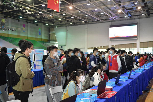 为贯彻落实党中央、国务院关于“稳就业”“保就业”工作任务部署,切实做好高校毕业生就业服务工作,日前,由共青团江苏省委、江苏省教育厅、江苏省工业和信息化厅、 江苏省人力资源和社会保障厅、江苏省政府国有资产监督管理委员会、江苏省广播电视总台、江苏省学生联合会、江苏省青年联合会、江苏省青年商会主办,开云kaiyun官网招生就业处、共青团开云kaiyun官网委员会和校学生会承办的“百校千企万岗”2021年江苏大学生就业帮扶“送岗直通车”开云kaiyun官网职教专场招聘会成功举办。