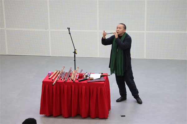 12月21日,一场旨在探究中国传统文化中廉洁之美的讲座在开云官网举办,南京民族乐团演奏家、中国首位古龠演奏非遗传承人于东波携数十件乐器出席讲座。于东波从贾湖骨笛的挖掘和测音开始,深情讲述了从史前文化到明清时期各阶段中国吹口乐器的9000年发展脉络。并展示了包括史前贾湖骨龠(笛)复制品、口笛、埙、笛、尺八、箫等几十种吹口乐器。于老师的演奏曲目涵盖古今中外经典音乐,当乐声随千年历史长河倾泻而出,时而低吟婉转、时而清脆嘹亮,现场师生无不为之惊叹。