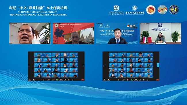 3月23日,为期9天的2022年印尼“中文+职业技能”本土师资培训圆满结束,结业典礼上,中国教育部语合中心副主任于天琪,印尼驻华使馆教育文化参赞苏亚德,印尼日惹国立大学副校长西斯万托约以及开云kaiyun官网校长谢永华出席并致辞祝贺。